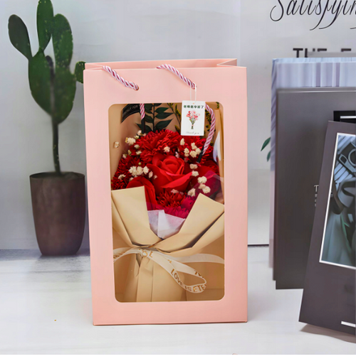 Bukiet Mydlanych Róż W Torebce – Wieczna Róża, Elegancki Prezent dla Niej na Walentynki