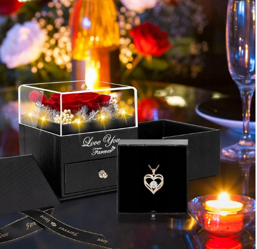 Wieczna Róża w Szkle Świecąca Naszyjnik dla Kobiety Prezent na Walentynki